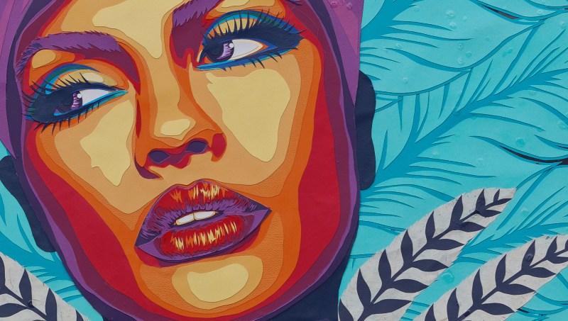 Détail Toute la sensualité et le glamour d’un visage capturé dans un mille-feuille de papier et des éclats de vernis…